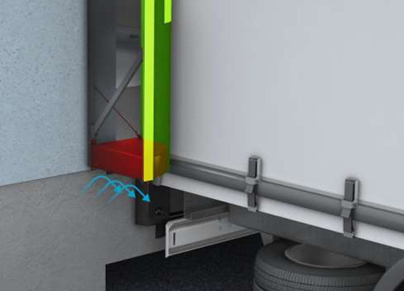 Подушки закрывают пространство в нижней части герметизатора проема в процессе погрузки разгрузки транспортного средства. Данное решение минимизирует потери тепла на объекте, защищает от сквозняков и проникновения холодного воздуха по бокам от кузова фуры и повышает энергоэффективность перегрузочного поста в целом.